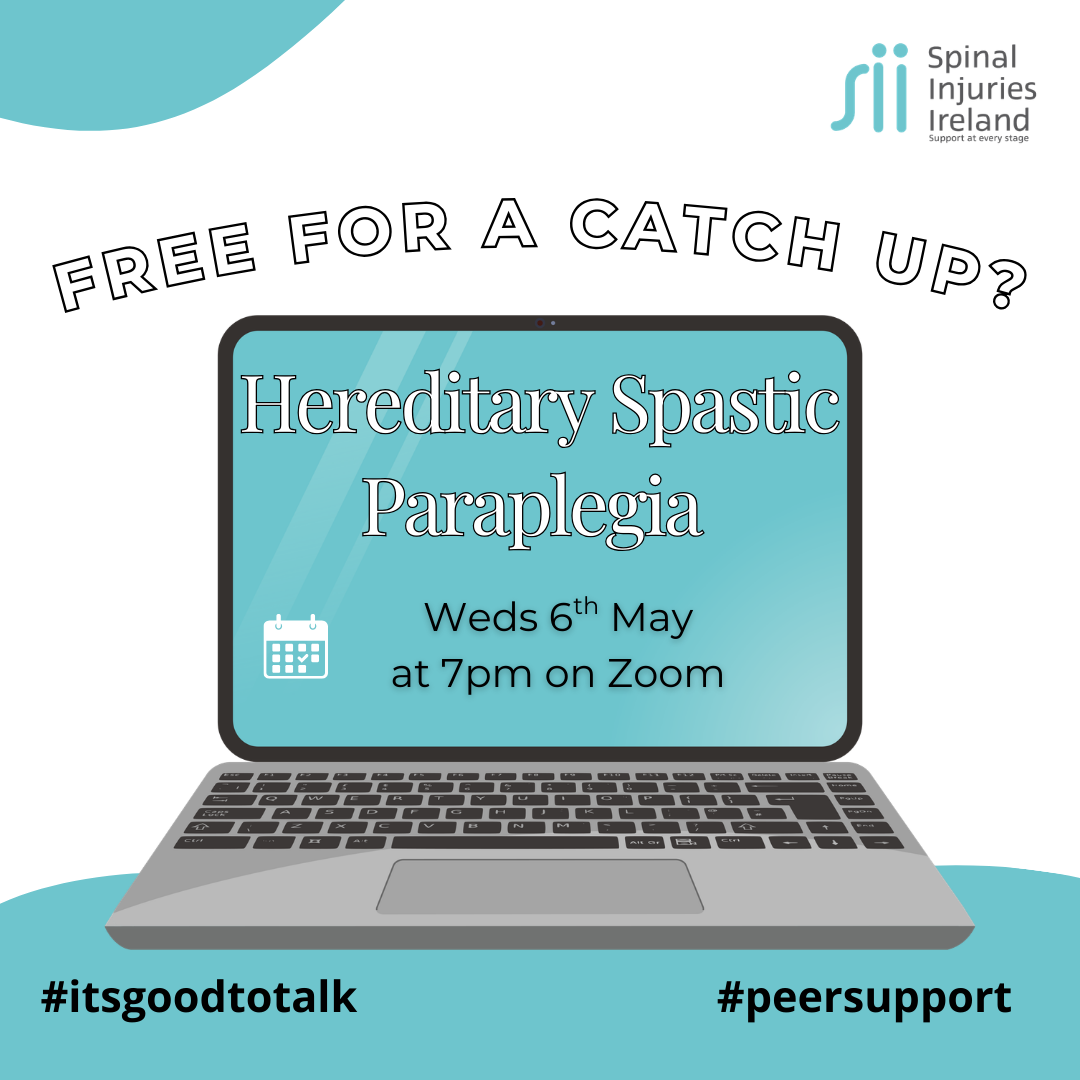 Join us via Zoom to meet with others in a similar situation and chat about issues you may have and share experiences and recommendations. You are free to just listen or join in. This is hosted by one of our Community Outreach Team and our peer volunteers. This zoom is open to anyone who is registered with Spinal Injuries Ireland and has Hereditary Spastic Paraplegia. Click here to register